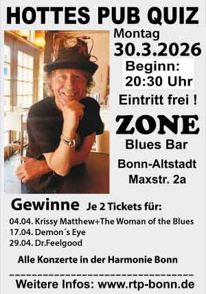 Das Jahr 2026 hat mit vielen tollen Konzerten schon gut angefangen, weitere folgen und 2027 wird auch schon gebucht., weitere folgen. Wir haben wie immer ein abwechslungsreiches Programm erstellt über Tribute, Blues, Metal, Liedermachern, Jazz etc. mit vielen alten Bekannten und neuen Highlights. Ein Knüller ist am 29.3. COLOSSEUM Köln, Stollwerck. Die legendäre englische Prog, Rock, Blues Band aus den 70er Jahren kommt wieder auf Tour, sogar mit neuem Album. Dazu viele schöne Konzerte in der Bonner Harmonie, u.a. feiern KILLERZ-„Tribute To IRON MAIDEN“ ihr 25jähriges Bestehen mit 2 Konzerten (unterschiedliche Set Lists) Tickets gibt es wie immer an den Vorverkaufsstellen z.B. Kaufhof Bonn, Touri Zentrale Bonn, Springmaus VK, Internet, Harmonie Theke, Kubana Siegburg Wellnesstheke, Andernach Touri.