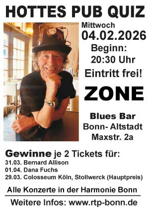 das Jahr 2025 neigt sich dem Ende entgegen und wir arbeiten unter Hochdruck am Programm von 2026. Bisher sind es 52 Konzerte, weitere folgen. Wir haben wie immer ein abwechslungsreiches Programm erstellt über Tribute, Blues, Metal, Liedermachern, Jazz etc. mit vielen alten Bekannten und neuen Highlights. Ein Knüller ist am 29.3. COLOSSEUM Köln, Stollwerck. Die legendäre englische Prog, Rock, Blues Band aus den 70er Jahren kommt wieder auf Tour, sogar mit neuem Album. Dazu viele schöne Konzerte in der Bonner Harmonie, u.a. feiern KILLERZ-„Tribute To IRON MAIDEN“ ihr 25jähriges Bestehen mit 2 Konzerten (unterschiedliche Set Lists) Tickets gibt es wie immer an den Vorverkaufsstellen z.B. Kaufhof Bonn, Touri Zentrale Bonn, Springmaus VK, Internet, Harmonie Theke, Kubana Siegburg Wellnesstheke, Andernach Touri.